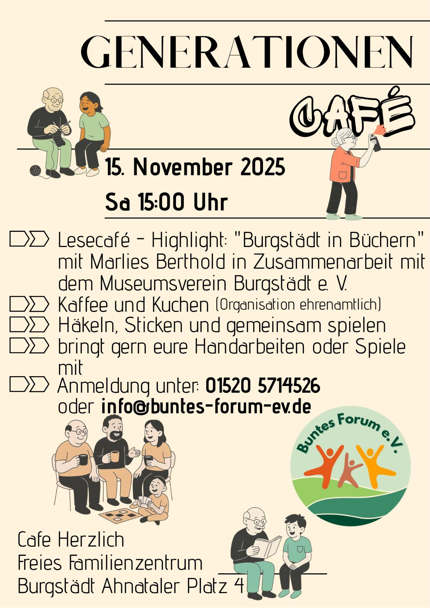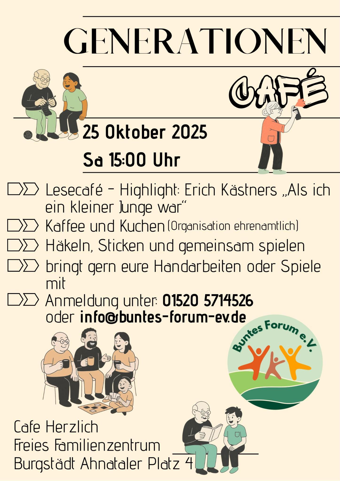 Anmeldung unter: 015205714526 oder info@buntes-forum-ev.de