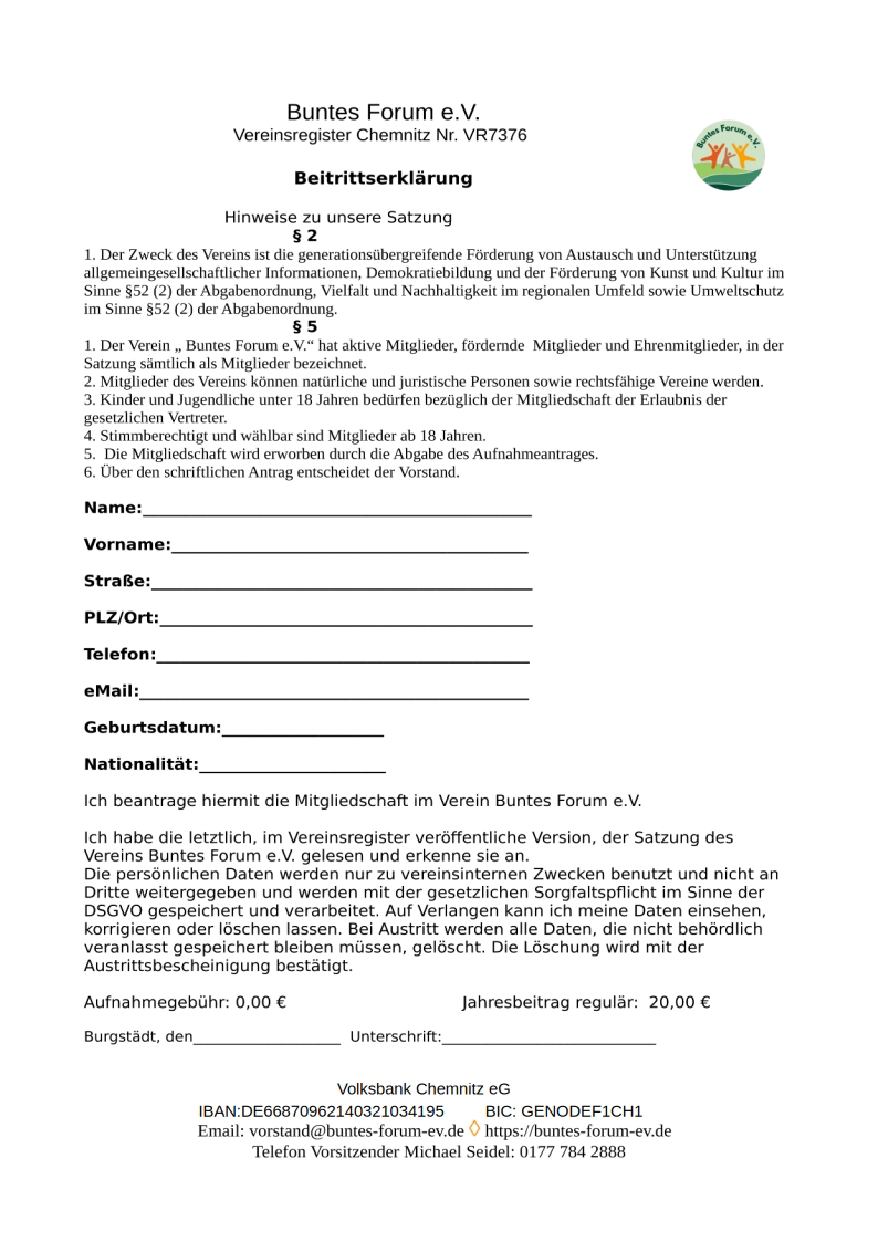 Kontoinhaber: Buntes Forum e.V.