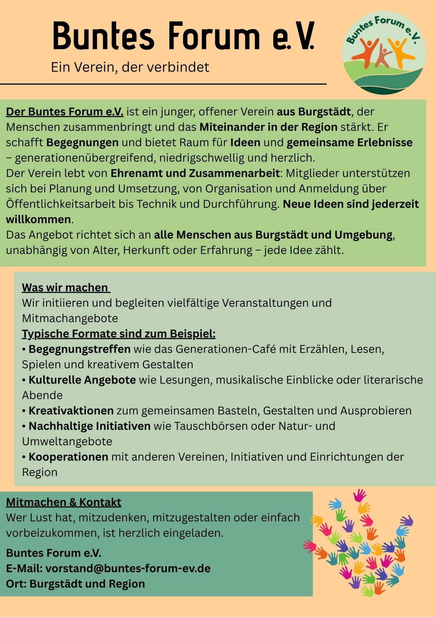Das alles ist „Buntes Forum e.V.“. Kommt und macht mit – auch ohne gleich in den Verein eintreten zu müssen!